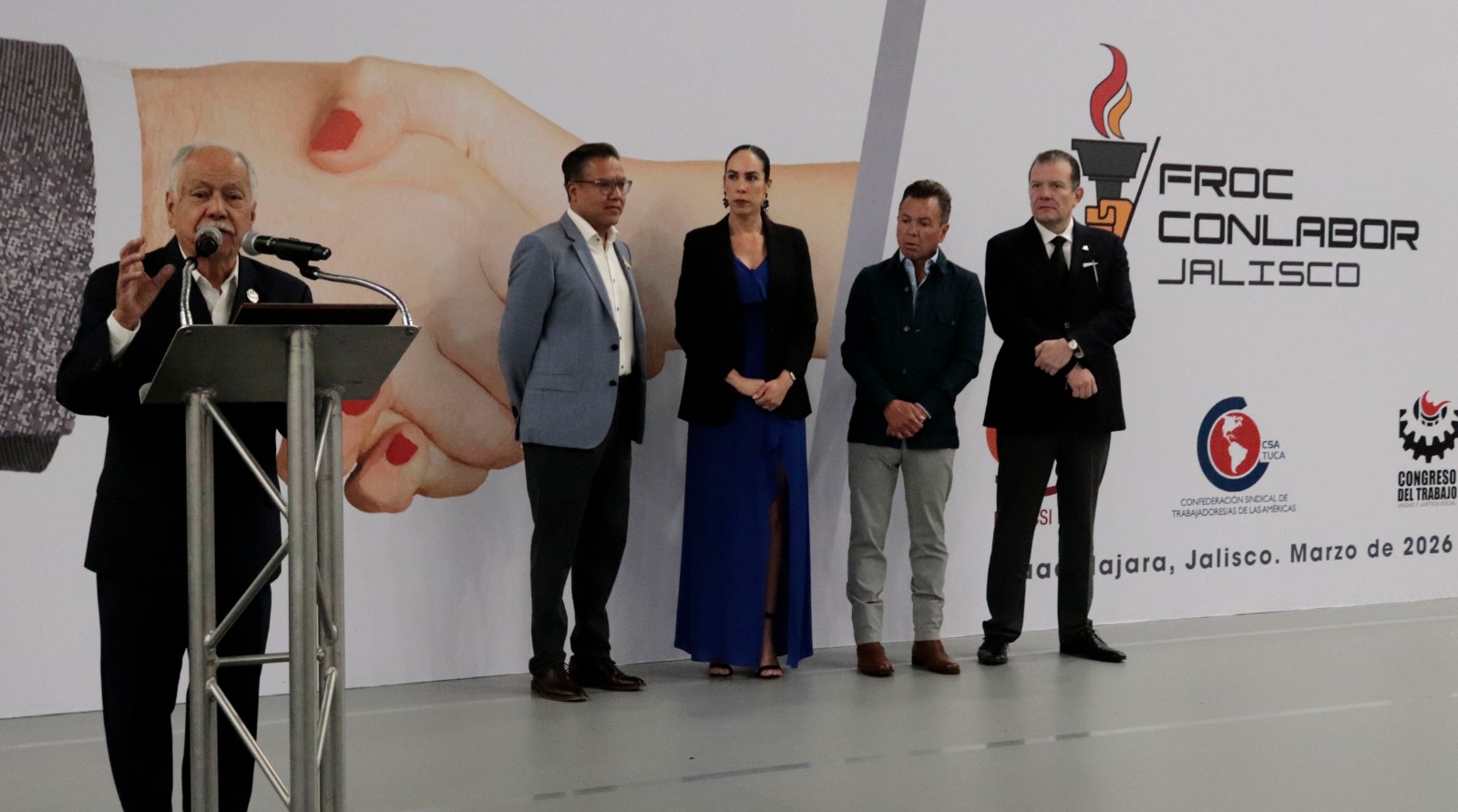 Acompañaron al líder de la FROC CONLABOR Jalisco, integrantes del Consejo Nacional Laboral, Alberto Juárez Bautista de CDMX, quien en su participación reconoció el apoyo del gobernador de Jalisco para lograr la estabilidad laboral, lo cual representa un beneficio para los trabajadores; Cesar Agustín Serna Escalera de Nuevo León; René Sánchez Juárez e Hirám Sánchez de Puebla; Roberto Monroy de EDOMEX; Fortino Batres de Guanajuato, Javier Oregón de Guerrero; Gilberto Vázquez de Nuevo León; Martha García de Tamaulipas; Evelia Díaz de CDMX; Eliseo Vázquez de Tlaxcala; David Aguilar de Oaxaca, Edmundo García de CONASIN Y Salvador Patlax de Nuevo León.