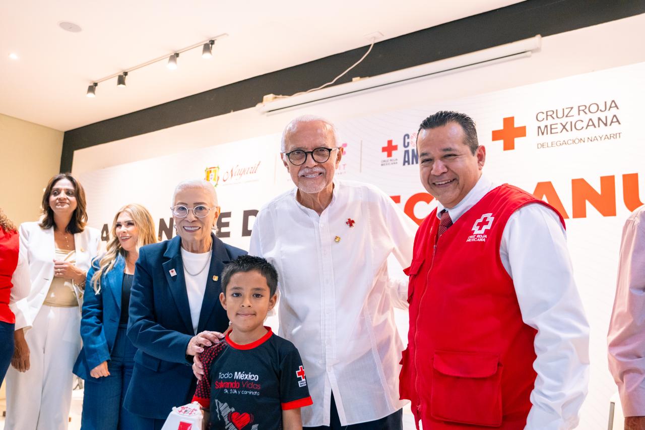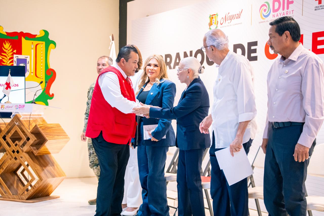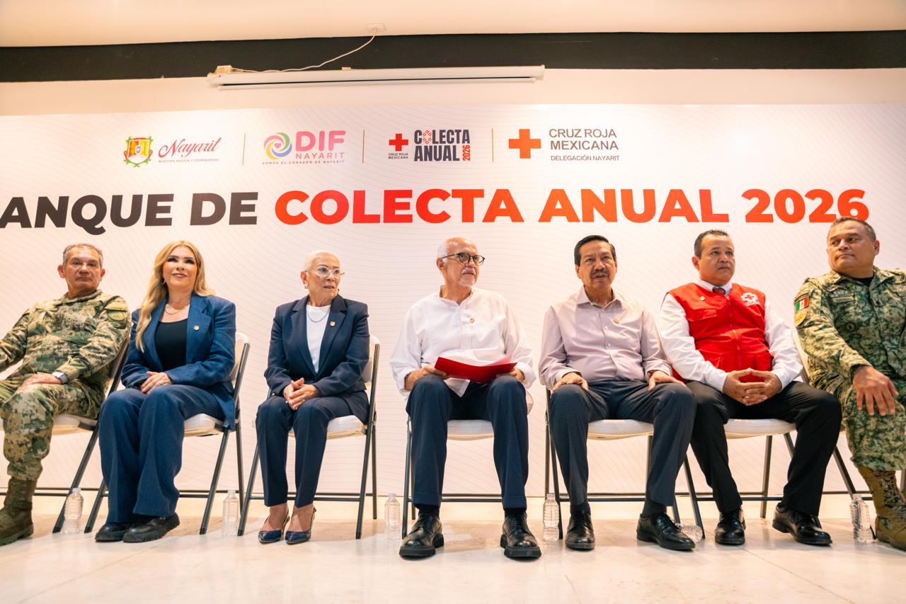 El gobernador del estado, Miguel Ángel Navarro Quintero, y su esposa, la presidenta del Sistema DIF Nayarit, doctora Beatriz Estrada Martínez, encabezaron este miércoles el arranque en Nayarit de la Colecta Anual 2026 de la Cruz Roja Mexicana, con el propósito de fortalecer las labores de atención y auxilio que esta institución brinda a la población.