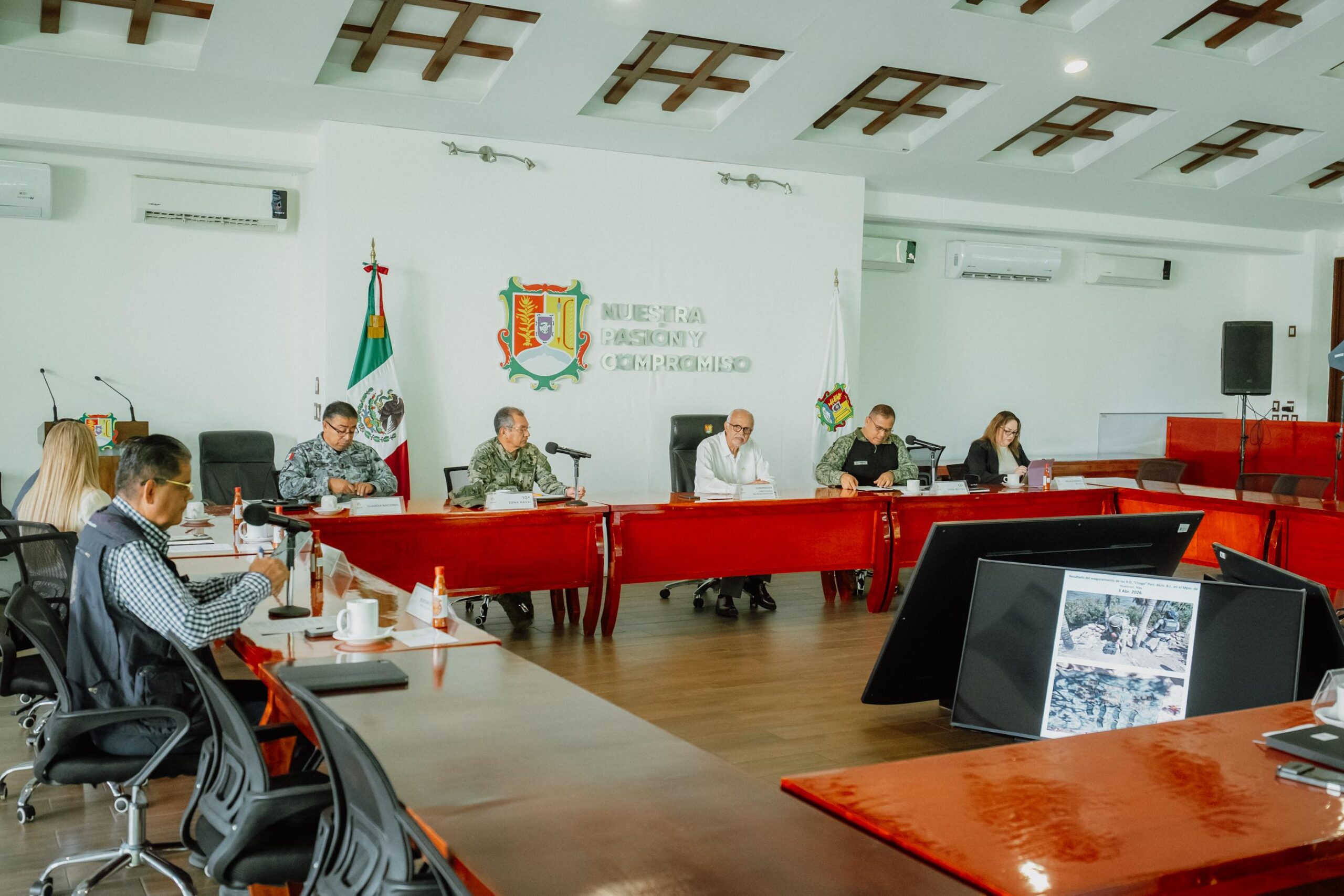 El gobernador del estado, Miguel Ángel Navarro Quintero, encabezó este lunes la Mesa Estatal de Construcción de la Paz y Seguridad, donde se dio seguimiento a las acciones que se mantienen en todo el territorio nayarita en coordinación con autoridades de los tres órdenes de gobierno.