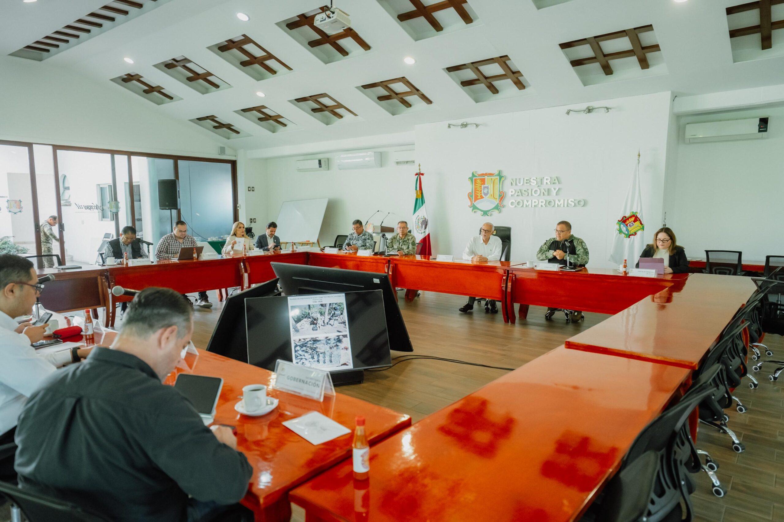 El gobernador del estado, Miguel Ángel Navarro Quintero, encabezó este lunes la Mesa Estatal de Construcción de la Paz y Seguridad, donde se dio seguimiento a las acciones que se mantienen en todo el territorio nayarita en coordinación con autoridades de los tres órdenes de gobierno.