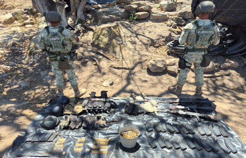 Como parte de los resultados, destacan acciones conjuntas del Ejército Mexicano, la Guardia Nacional, la Secretaría de Marina y la Policía Estatal, que derivaron en aseguramientos de armamento, cartuchos, droga, vehículos y dispositivos ilícitos, así como la desarticulación de campamentos utilizados por grupos delictivos.
