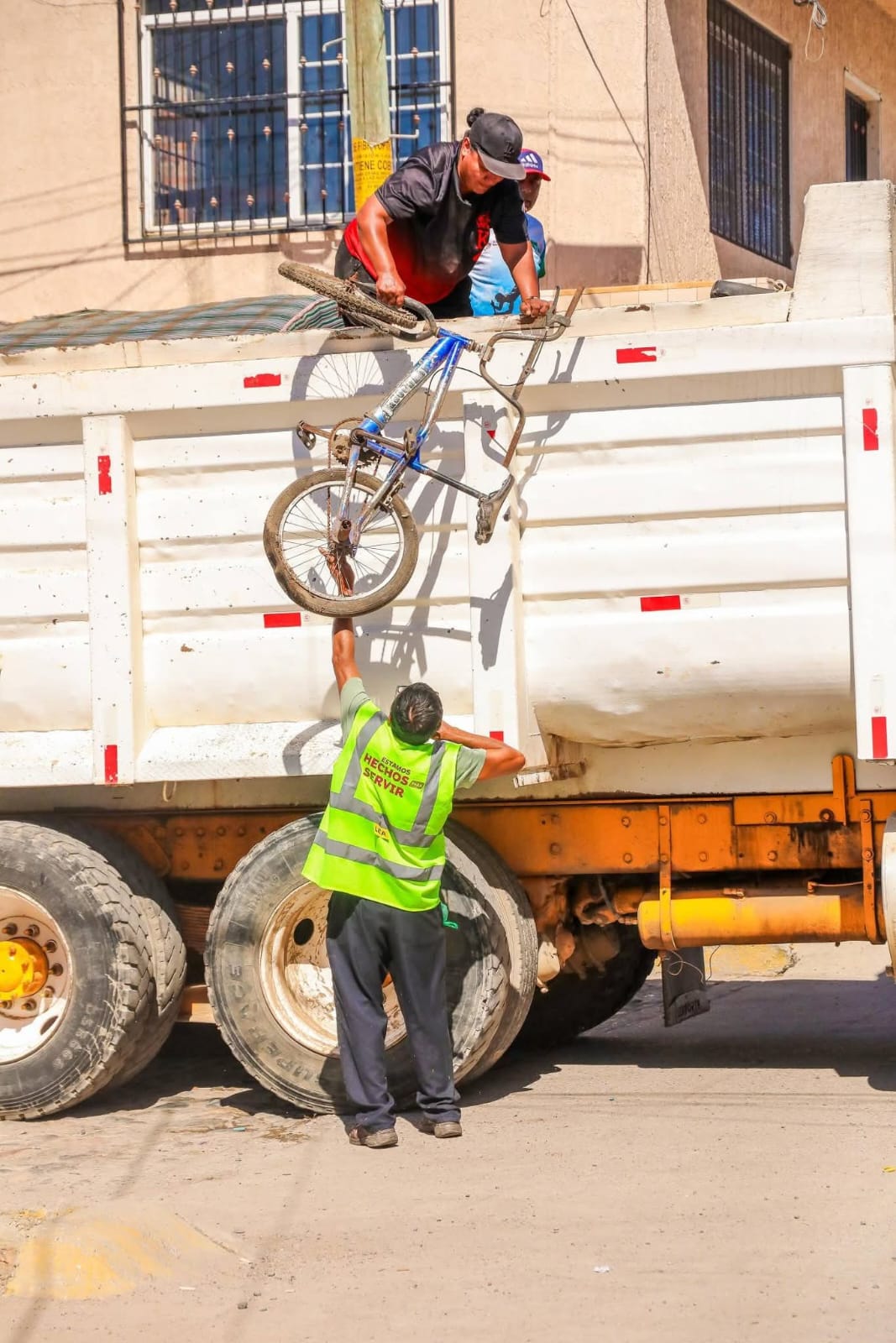Durante esta jornada, vecinos se sumaron a la actividad sacando de sus hogares diversos cacharros y objetos en desuso, lo que permitió retirar una importante cantidad de residuos que representan un riesgo sanitario y ambiental.