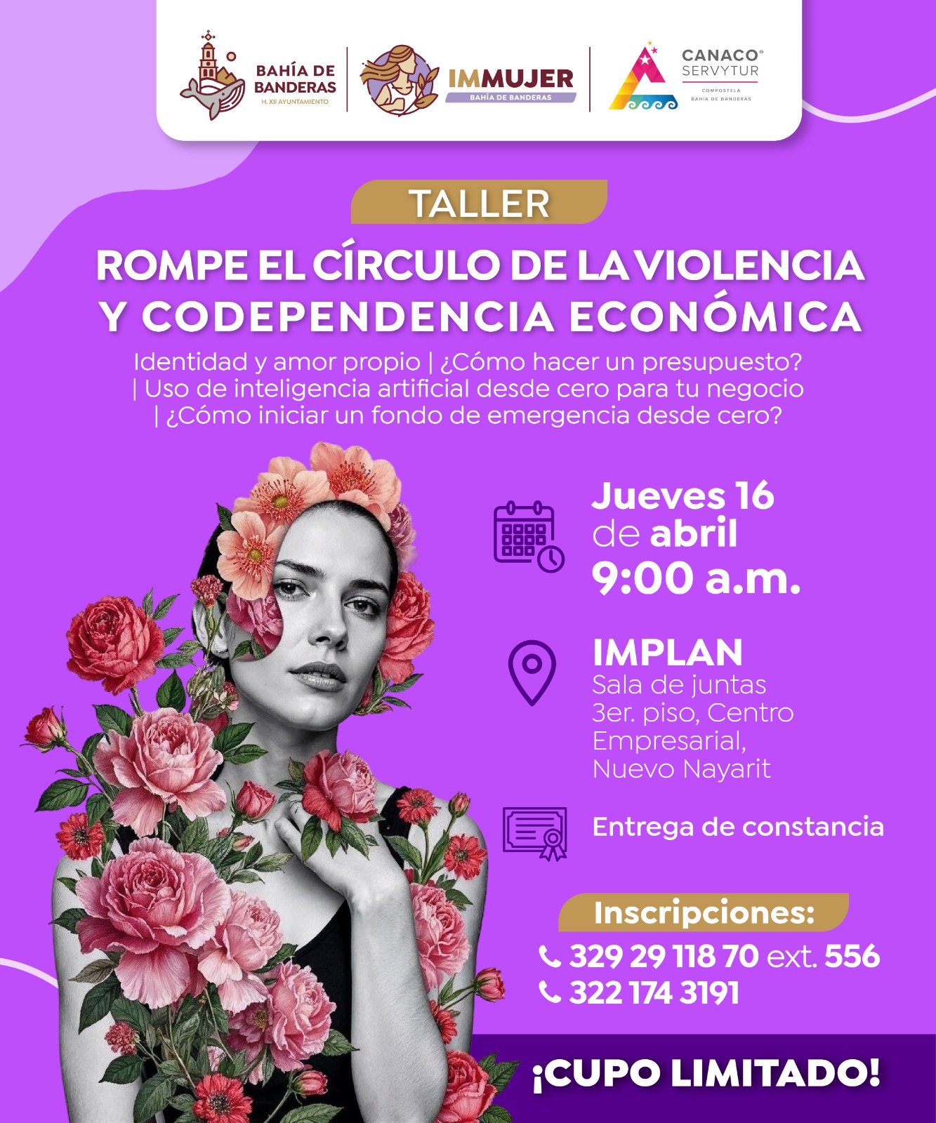 La actividad se llevará a cabo el próximo 16 de abril a las 9:00 de la mañana en las instalaciones del IMPLAN, en Nuevo Nayarit. Durante la sesión, los asistentes podrán adquirir herramientas para identificar y romper ciclos de violencia, así como fortalecer su autonomía económica.