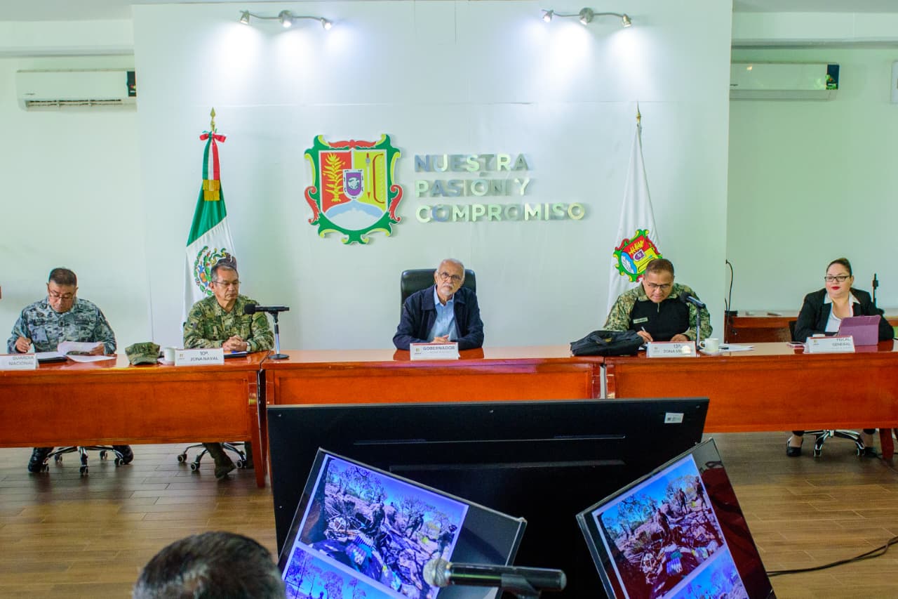 El gobernador del estado, Miguel Ángel Navarro Quintero, informó que, a través de la coordinación entre los tres órdenes de gobierno, en la Mesa Estatal de Construcción de la Paz y la Seguridad se evalúa de manera permanente la situación en la entidad, con la definición de estrategias y el despliegue de operativos en distintos municipios para preservar la tranquilidad de las familias nayaritas.