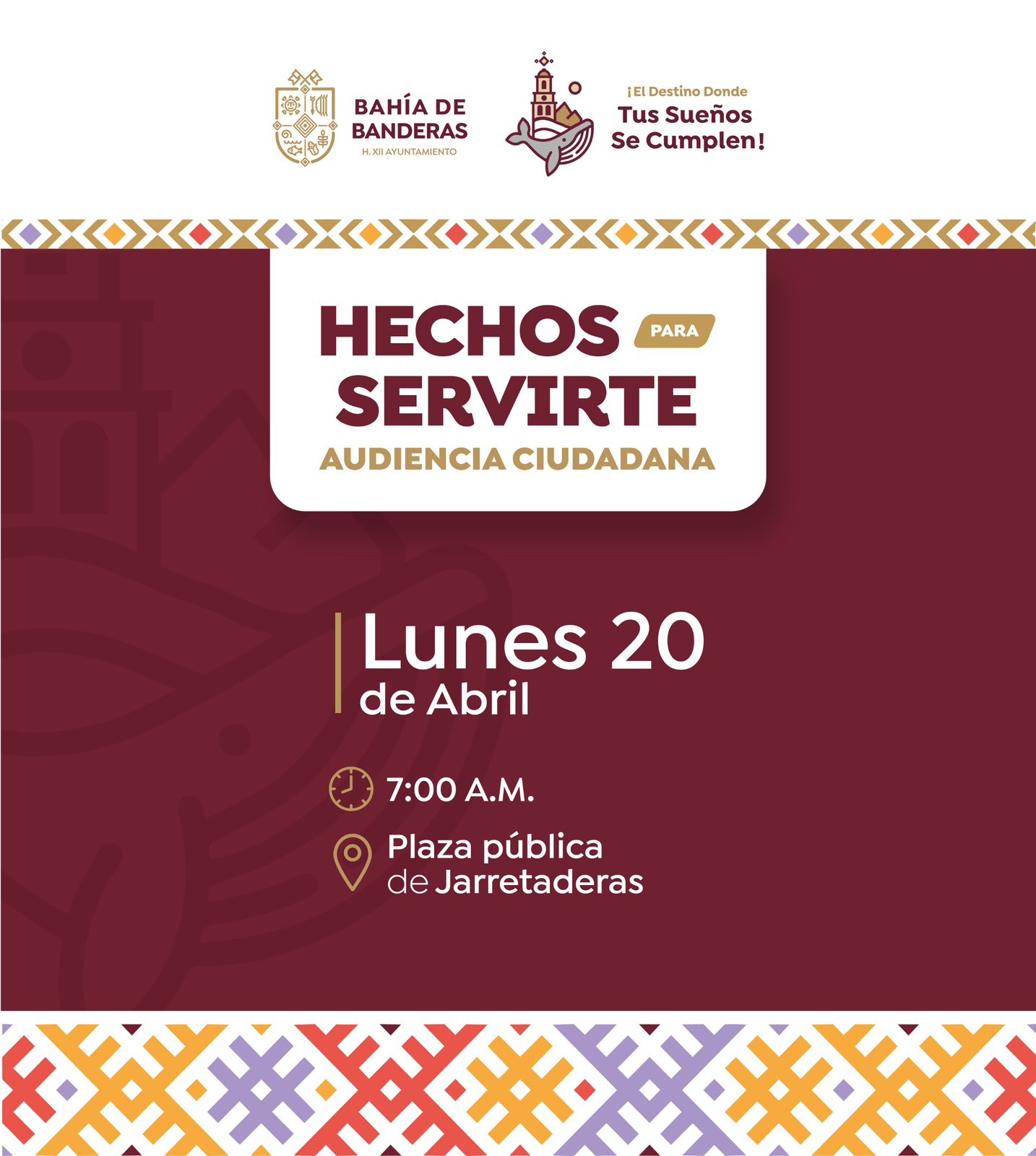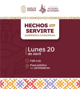 El H. XII Ayuntamiento de Bahía de Banderas llevará a cabo una nueva Audiencia Ciudadana el próximo lunes 20 de abril, misma que será encabezada por el presidente municipal.
