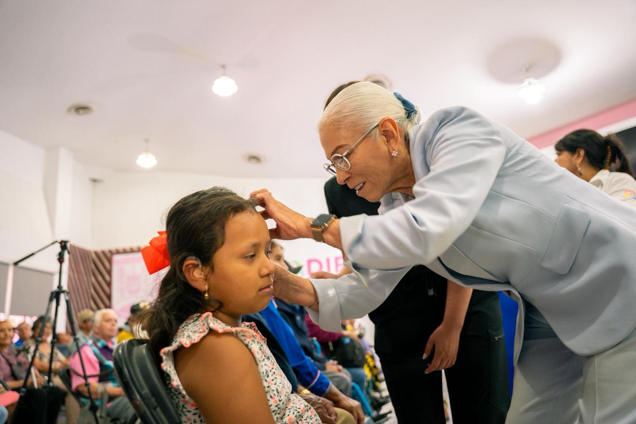 Mejorar la calidad de vida de las personas con pérdida de la audición es una prioridad permanente para la presidenta del Sistema DIF Nayarit, doctora Beatriz Estrada Martínez, quien encabezó la entrega de aparatos auditivos, facilitando así la amplificación del sonido y favoreciendo una mejor comunicación.